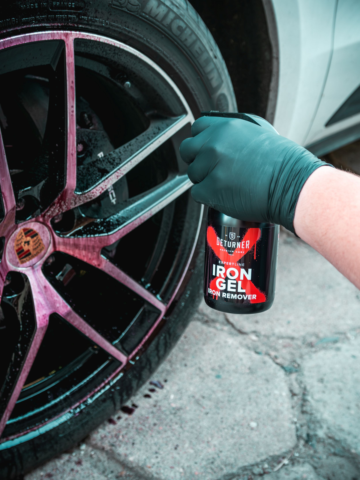 Deturner Iron Gel este un decontaminant metalic profesional cu formulă tip gel, conceput pentru îndepărtarea particulelor de fier, prafului de frână, ruginii volatile și contaminării metalice incrustate pe vopsea și jante.